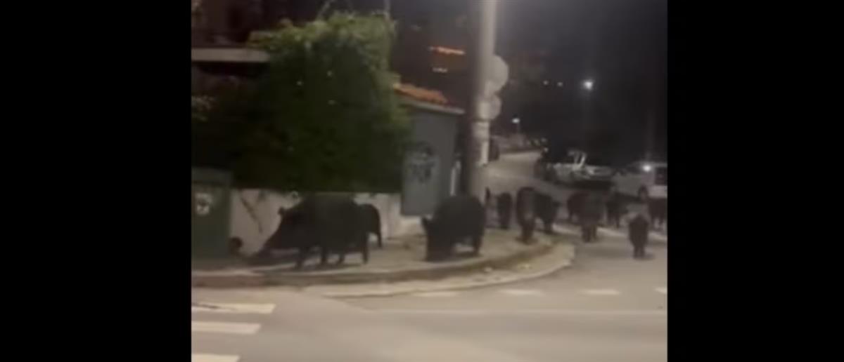 Θεσσαλονίκη: Αγέλη αγριογούρουνων στους δρόμους του Πανοράματος (βίντεο)
