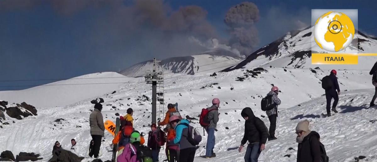Στην Ιταλία, οι σκιέρ δεν πτοήθηκαν από τα μεγάλα σύννεφα καπνού και τέφρας που υψώθηκαν από το ηφαίστειο της Αίτνας.