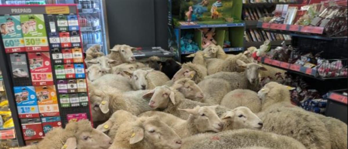 After breaking away from their 500-strong herd, the brazen sheep spent 20mins milling around in the Penny supermarket before ewe-turning and seeing themselves out. pic.twitter.com/ZkdXvT7Jcb
