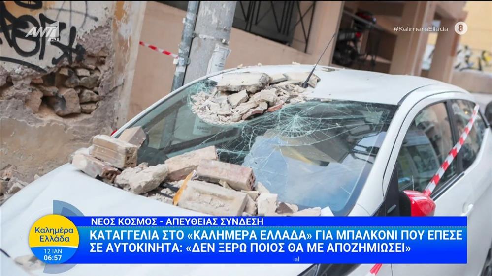 Καταγγελία στο "Καλημέρα Ελλάδα" για μπαλκόνι που έπεσε σε αυτοκίνητα – Καλημέρα Ελλάδα – 12/01/2026