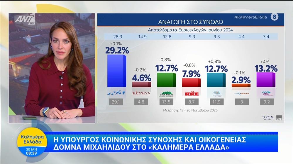 Η υπουργός Κοινωνικής Συνοχής και Οικογένειας Δόμνα Μιχαηλίδου στο Καλημέρα Ελλάδα - 30/01/2026