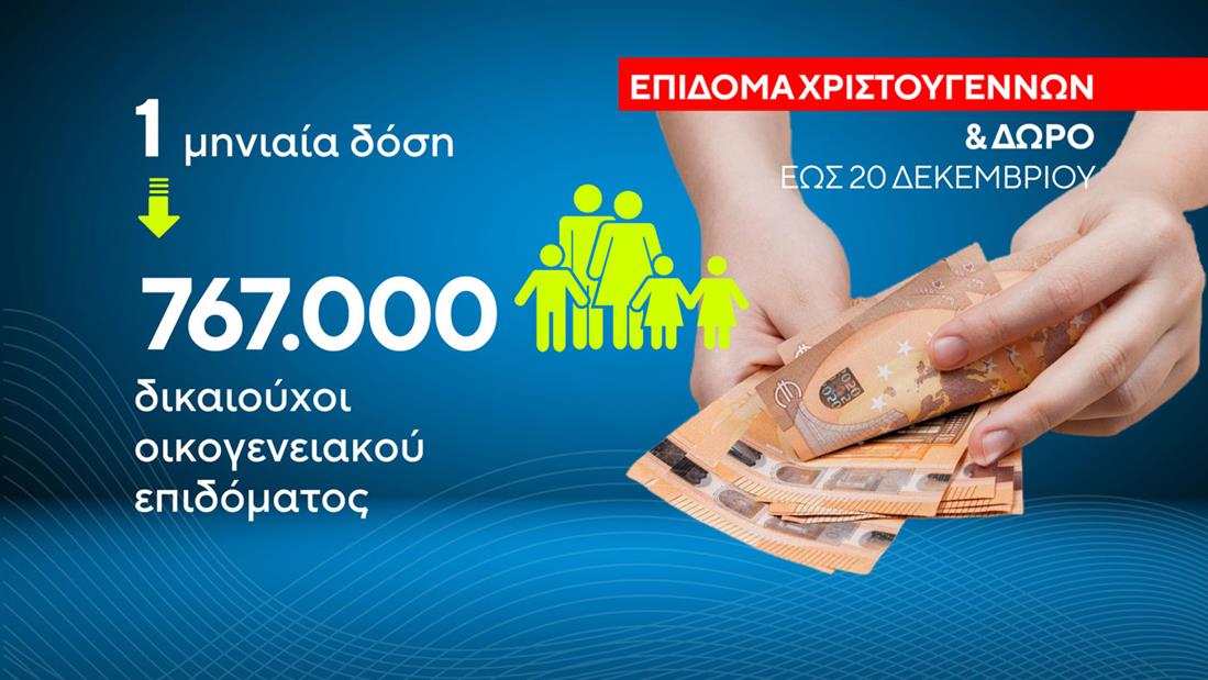 - Μία μηνιαία δόση: Σε 767.000 Οικογένειες δικαιούχοι οικογενειακού επιδόματος.
