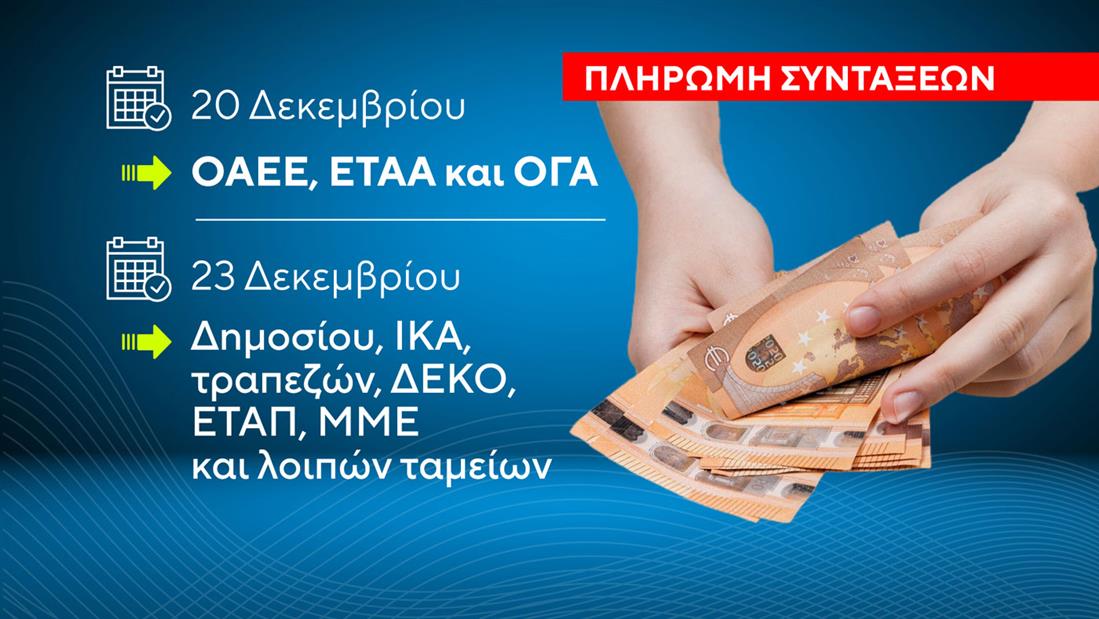 Το χρονοδιάγραμμα καταβολής συντάξεων και επιδομάτων τον Δεκέμβριο θα είναι: