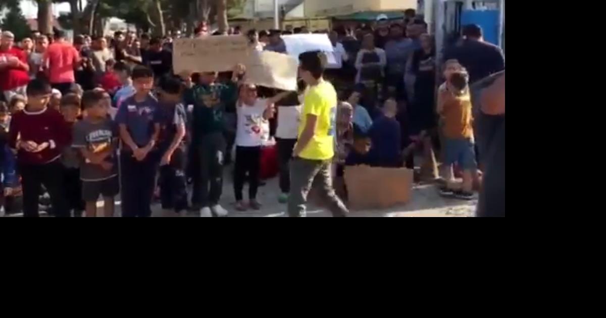 Με χαρτιά που γράφουν μεταξύ άλλων '' δεν μπορούμε να μείνουμε κατά δεκάδες'' και ''ανθρώπινα δικαιώματα'' μικροί και μεγάλοι που διαμένουν στο κέντρο φιλοξενίας διαμαρτύρονται για τις συνθήκες διαβίωσης, σύμφωνα με το seleo.gr.