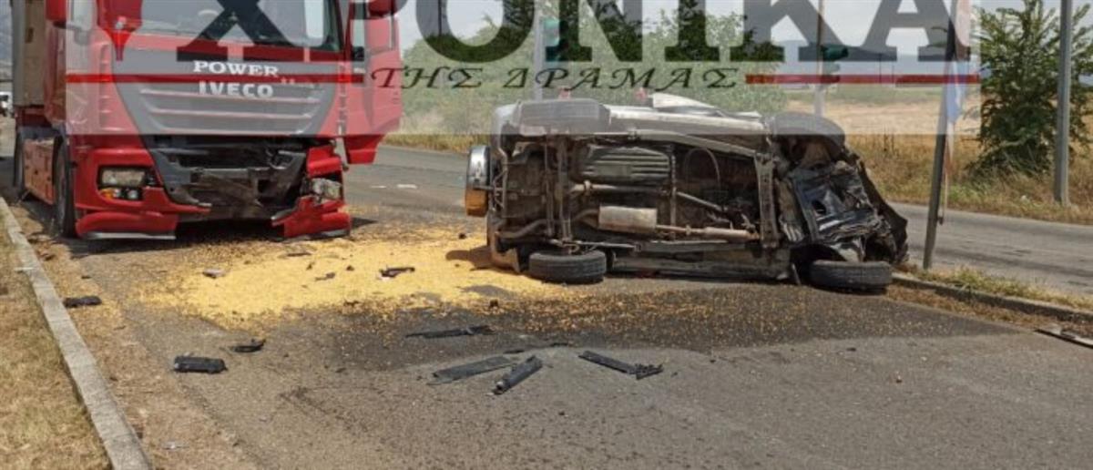 Δράμα - Τροχαίο: Αυτοκίνητο συγκρούστηκε μετωπικά με νταλίκα