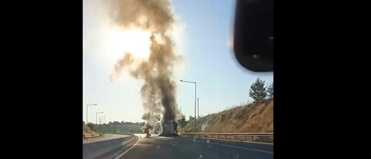 Θεσσαλονίκη: Φωτιά σε φορτηγό στην Εθνική Οδό (βίντεο)