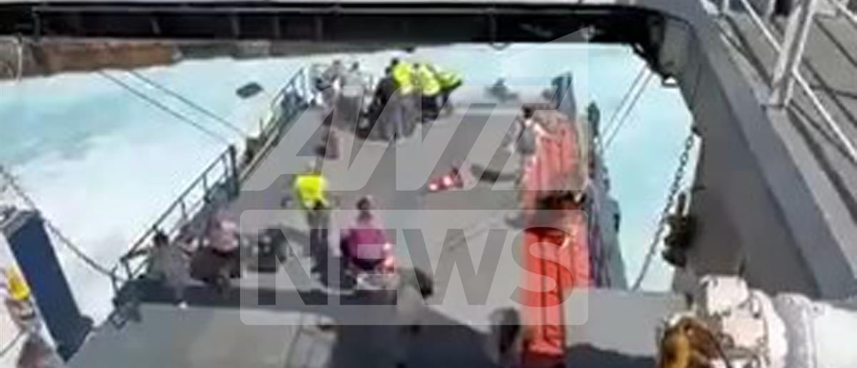 Στο αποκλειστικό βίντεο που εξασφάλισε ο ΑΝΤ1, φαίνεται το απόλυτο χάος που επικράτησε όταν μετακινήθηκε ο καταπέλτης του πλοίου κατά την επιβίβαση των πολιτών.