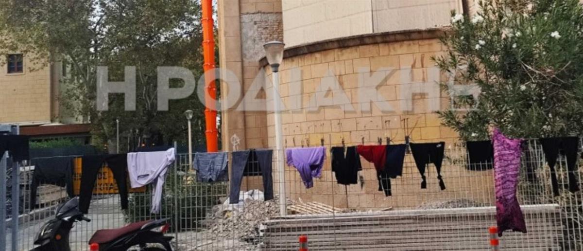 Συγκεκριμένα, μετανάστες κατασκήνωσαν στον χώρο του υπό κατασκευή Εθνικού Θεάτρου της Ρόδου, με χαρακτηριστική την εικόνα της απλωμένης μπουγάδας έξω από τον χώρο, την οποία δημοσίευσε το rodiaki.gr.