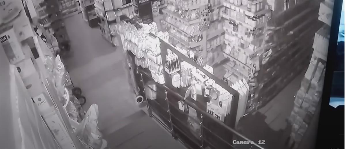Σε βίντεο καμερών σούπερ μάρκετ της Ποτίδαιας καταγράφηκε η στιγμή της δόνησης, ενώ τα προϊόντα έπεφταν από τα ράφια του.