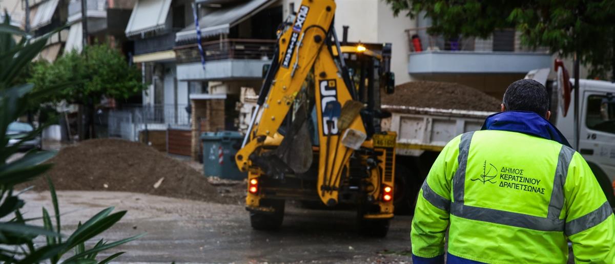 Κακοκαιρία Byron: Απομάκρυνση των φερτών υλικών στους πλημμυρισμένους δρόμους από τα συνεργεία της Περιφέρειας Αττικής