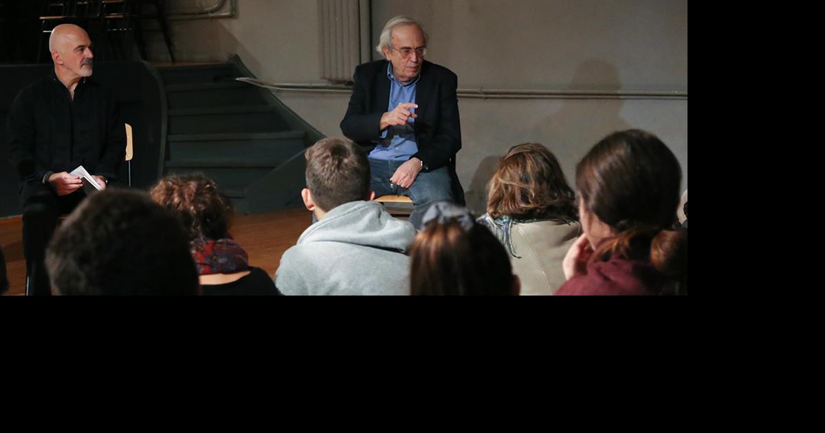 Στη συνέχεια, ο Υπουργός συνάντησε σπουδαστές και από τα τρία έτη φοίτησης, στη μεγάλη αίθουσα της σχολής, στο «Θεατράκι», όπως την ονομάζουν. Ο κ. Στάθης Λιβαθινός τόνισε την εκπαιδευτική-ακαδημαϊκή ιδιότητα του Υπουργού λέγοντας ότι «πρόκειται για έναν Δάσκαλο που είναι και Υπουργός και μας τιμά με την παρουσία του», ενώ ο κ. Μπαλτάς ρώτησε τους σπουδαστές για διάφορες πρακτικές παραμέτρους της σχολής, για τους λόγους που επέλεξαν να ακολουθήσουν αυτή τη σταδιοδρομία, για το «τι σημαίνει εντέλει υποκριτική», για το αν ισχύει η εντύπωση που έχει ότι «παρά την οικονομική κρίση ή και λόγω αυτής, συντελείται μια πολιτιστική άνθηση».