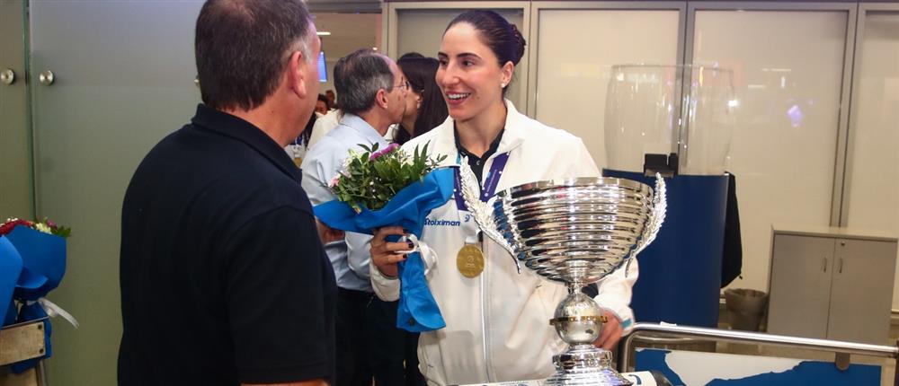 Το κλίμα στο αεροδρόμιο ήταν πανηγυρικό, με ελληνικές σημαίες, αγκαλιές ενώ οι αθλήτριες ευχαρίστησαν τον κόσμο για τη στήριξη και τη συγκινητική υποδοχή.