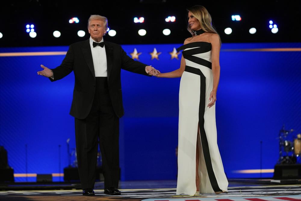 Η Μελάνια Τραμπ ήταν εντυπωσιακη με ένα ασπρόμαυρο φόρεμα με ακάλυπτους τους ώμους της ενώ ο Ντόναλντ Τραμπ φορούσε ένα μαύρο σμόκιν.