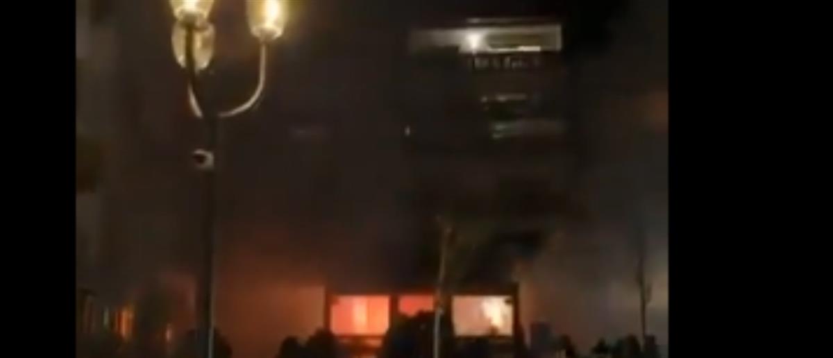 Εικόνες που μετέδωσαν ελβετικά μέσα ενημέρωσης δείχνουν ένα φλεγόμενο κτίριο και σωστικά συνεργεία.
