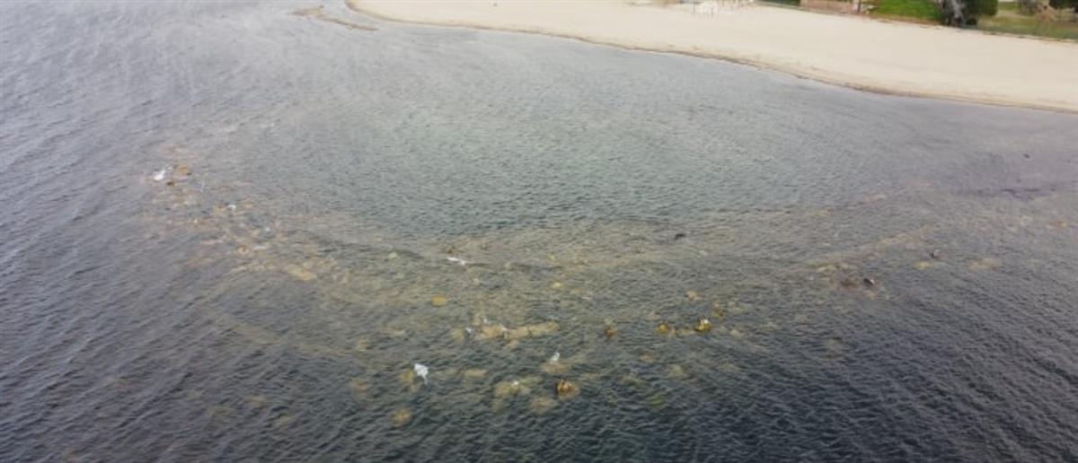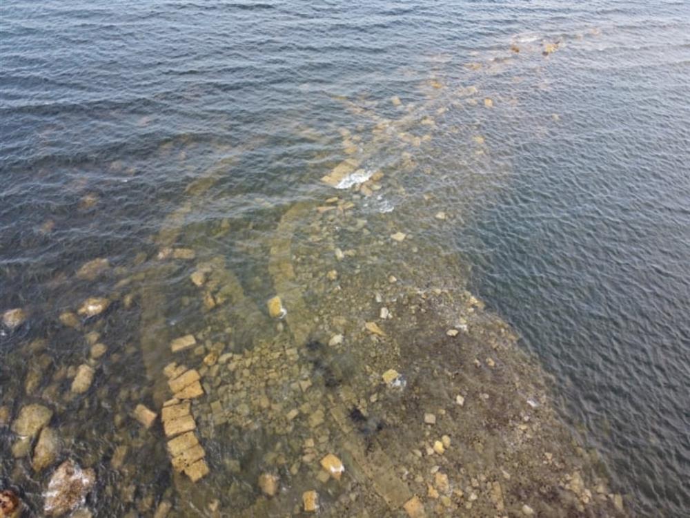 Σε φωτογραφίες που κατέγραψαν πολίτες με τα κινητά τους, φαίνονται τα ερείπια του αρχαίου ελληνικού λιμανιού.