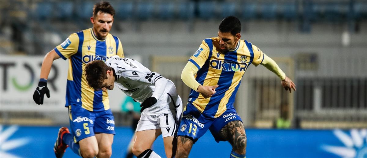 Οι «ασπρόμαυροι» προσπάθησαν από τα πρώτα λεπτά να κλείσουν τους Αρκάδες στα καρέ τους. Οι γηπεδούχοι, όμως, έβγαιναν σχετικά εύκολα στην αντεπίθεση. Στο 7’ το δυνατό σουτ του Εβγκένι Γιαμπλόνσκι έδιωξε σε κόρνερ στην κλειστή του γωνία ο Ντομινίκ Κοτάρσκι ενώ έξι λεπτά αργότερα ο Χουλιάν Μπαρτόλο έφυγε στην πλάτη του Γιάννη Μιχαηλίδη, αλλά ο Έλληνας στόπερ πρόλαβε τον Αργεντινό μέσο πριν κάνει σουτ ή πάσα.