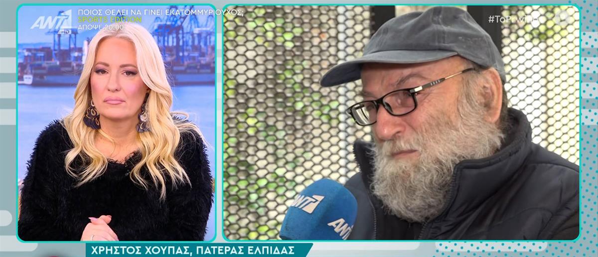Το πρωί της Πέμπτης 20 Φεβρουαρίου στην εκπομπή "Το Πρωινό" του ΑΝΤ1 μίλησε ο Χρήστος Χούπας πατέρας της Ελπίδας που έχασε την ζωή της στα Τέμπη στις 28 Φεβρουαρίου 2023. Ο ίδιος συγκινεί με την εξομολόγησή του αναφέροντας χαρακτηριστικά: «Φυσικά και έχασα την πίστη μου, ο Πανάγαθος με έβαλε στο βαρέλι κι έξυσε τη μπογιά για να με πάει ακόμα παρακάτω. Δεν του χρωστάω τίποτα. Η μαχαιριά είναι πολύ βαθιά».