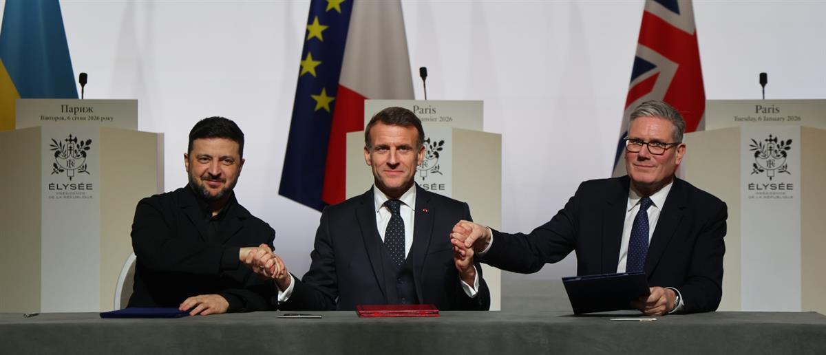 Ο Γάλλος πρόεδρος, ο Ουκρανός ομόλογός του Βολοντίμιρ Ζελένσκι και ο Βρετανός πρωθυπουργός Κιρ Στάρμερ υπέγραψαν μια δήλωση πρόθεσης για την ανάπτυξη της πολυεθνικής δύναμης μετά την κατάπαυση του πυρός.
