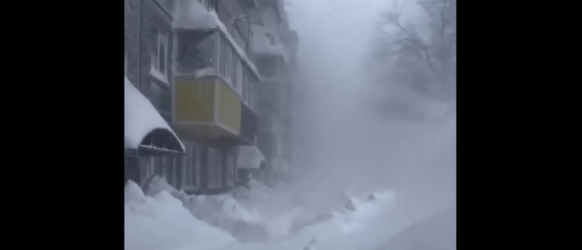 Ρωσικά μέσα ενημέρωσης δείχνουν τεράστιους όγκους χιονιού να φθάνουν μέχρι τον δεύτερο όροφο κτιρίων, σε ορισμένα σημεία.
