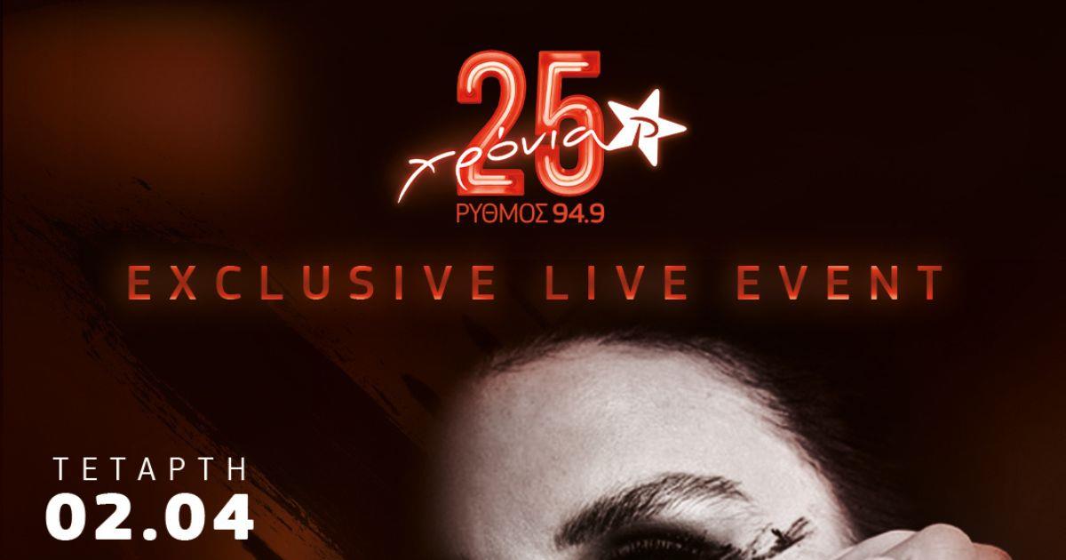 Ο ΡΥΘΜΟΣ 94.9 γιορτάζει τα 25 του χρόνια με ένα Exclusive Live Event με την αγαπημένη τραγουδίστρια Ιουλία Καλλιμάνη, αποκλειστικά για τους ακροατές του!