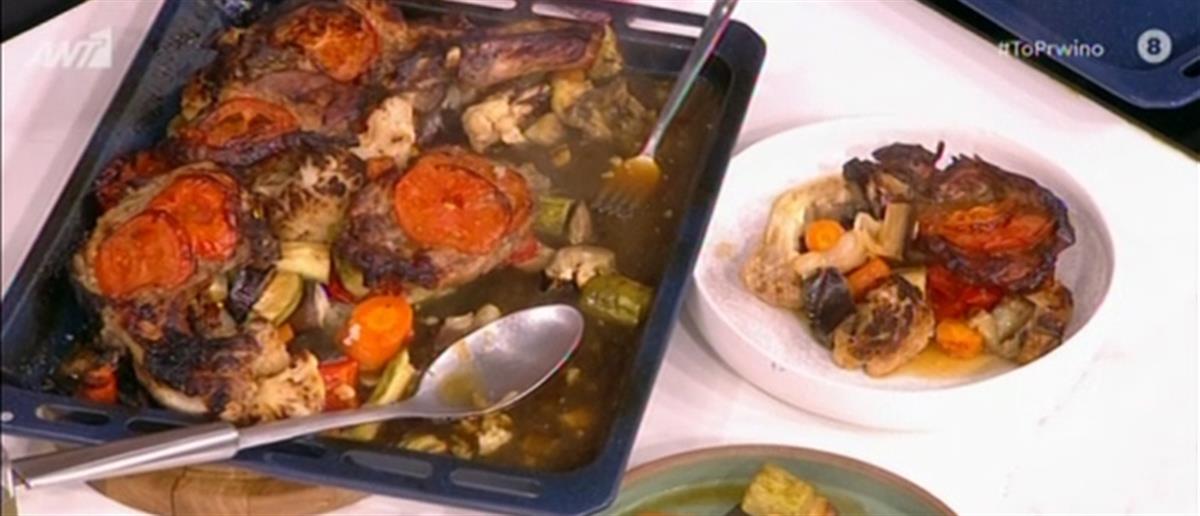 Μπριζόλες στο φούρνο με μελωμένα λαχανικά από τον Βασίλη Καλλίδη