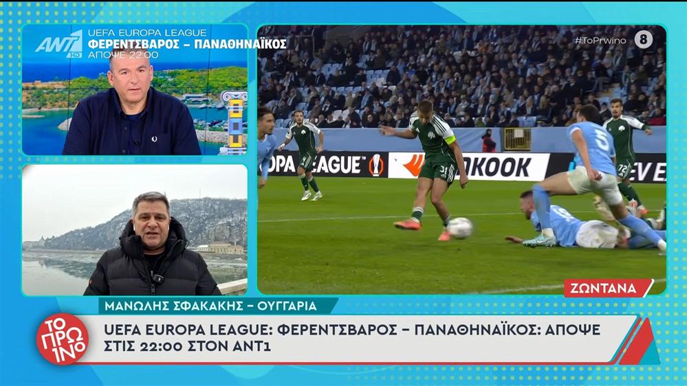 UEFA EUROPA LEAGUE: Φερεντσβάρος – Παναθηναϊκός – απόψε στις 22:45 στον ΑΝΤ1 – Το Πρωινό – 22/01/2026
