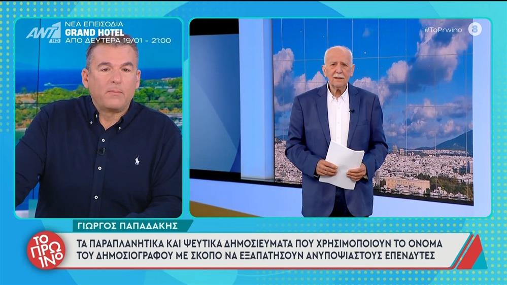 Γιώργος Παπαδάκης: Τα παραπλανητικά και ψεύτικα δημοσιεύματα που χρησιμοποιούν το όνομά του – Το Πρωινό – 16/01/2026