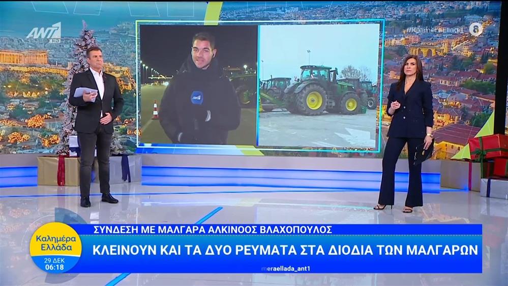 Αγρότες: Κλείνουν και τα δυο ρεύματα στα διόδια των Μαλγάρων - Καλημέρα Ελλάδα - 29/12/2025