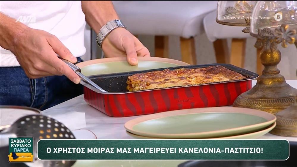 Ο Χρήστος Μοίρας μας μαγειρεύει κανελόνια-παστίτσιο.
