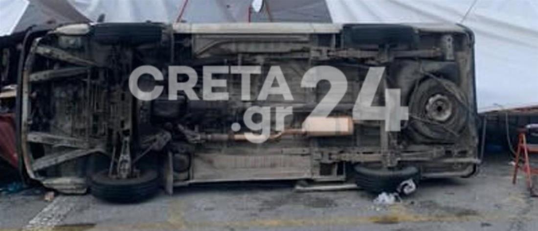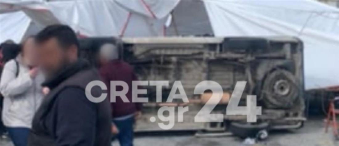 Ηράκλειο – “Ανεμοστρόβιλος” διέλυσε πάγκους στην λαϊκή αγορά και τούμπαρε κλούβες (εικόνες)