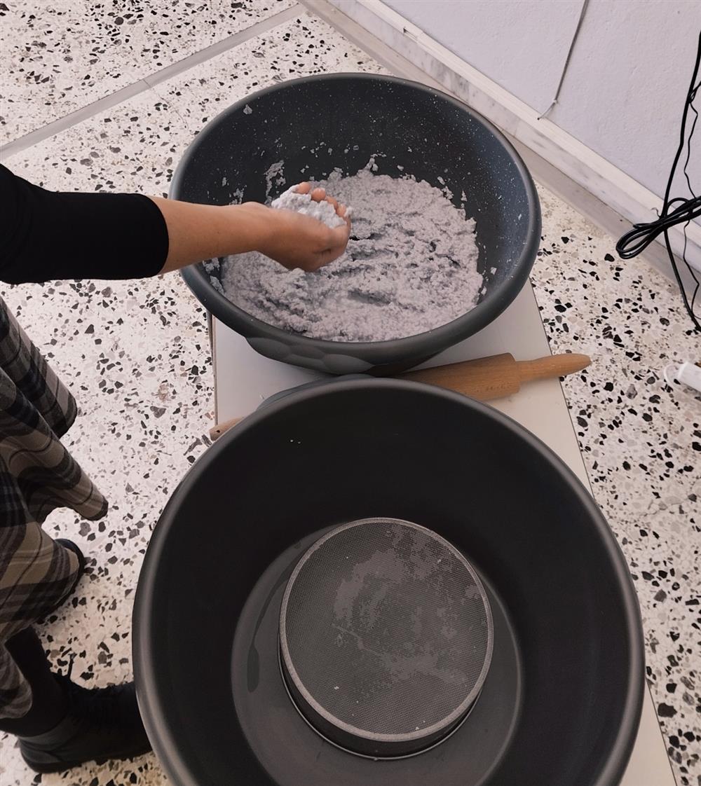 Η κ. Καζλάρη μαζί με τα παιδιά του δημοτικού σχολείου Ζερβοχωρίων Χαλκιδικής πήρε τα αχρησιμοποίητα ψηφοδέλτια, τα μετέτρεψε σε χαρτοπολτό με μια απλή επεξεργασία, άπλωσε φύλλα χαρτοπολτού και έριξε πάνω τους σπόρους από αρωματικά φυτά, βότανα και λουλούδια της ελληνικής φύσης.